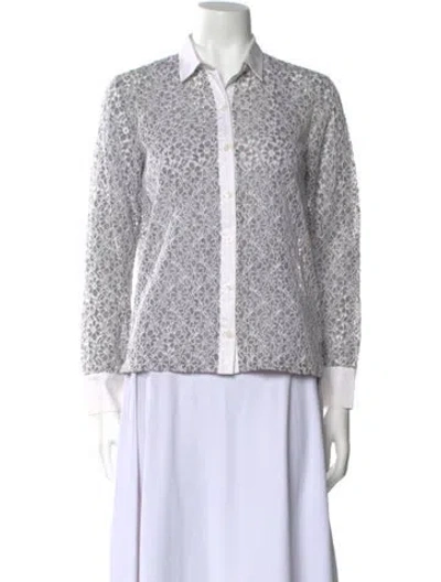 Pre-owned Lace Pattern Long Sleeve Button-up Top In Multi