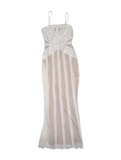 Mignon Evening Gown White Patterned Sleeveless with Square Neckline Concealed Zip Closure at Back Fit: Dresses by Mignon typically fit true to size. | Mignon Patterned Long Dress in White, Women's M