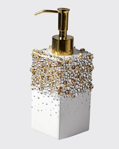 Box pump for soap or lotion. Embellished with a gradient effect of rhinestones and crystals. Wood/epoxy resin. Approx. 2.75"Sq. x 8.25"T. Wipe with a damp cloth. Made in the USA.