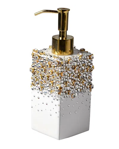 Box pump for soap or lotion. Embellished with a gradient effect of rhinestones and crystals. Wood/epoxy resin. Approx. 2.75"Sq. x 8.25"T. Wipe with a damp cloth. Made in the USA.