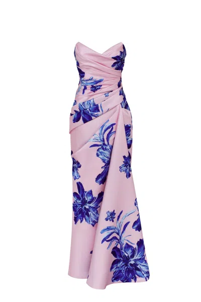 MILLA Strapless Pink Maxi Dress With Blue-flowered Pattern, Glow-up In Pink-blue