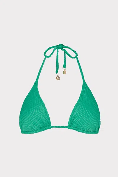 MILLY Cabana Textured Chevron Triangle Bikini Top In Green
