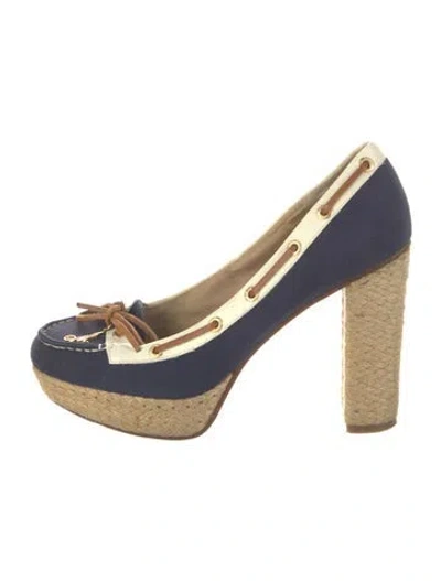 Pre-owned Canvas Colorblock Pattern Pumps In Blue