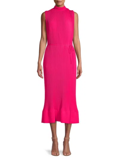 Pleating adds shape to this midi dress, trimmed with a feminine ruffle hem. mock turtleneck Sleeveless Self-tie neck straps Self-tie drawstring waist Fluted ruffle hem Polyester Dry clean Imported SIZE & FIT About 50 from shoulder to hem Model measurements: 5'10" tall Model is wearing a US size 4. Selloff Women's - S/o W Collections > Saks Off 5th. Milly. Color: Milly Pink. Size: 2.