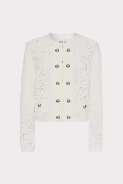 MILLY Bubble Pointelle Knit Jacket In Ecru