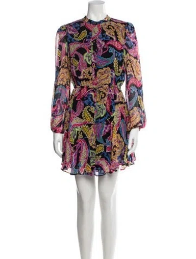 Milly A-Line Dress Printed Long Sleeve with Crew Neck Designer Fit: Dresses by Milly typically fit true to size. | Milly Printed Mini Dress, Women's US 4 | S