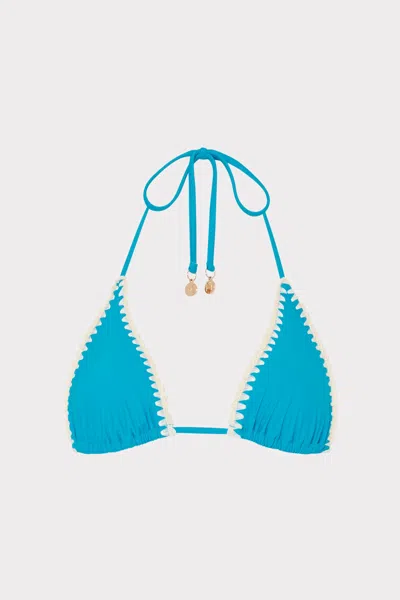This classic string bikini top comes in solid colors trimmed with crochet for chic and easy pool looks. It’s padded with removable cups and ties around the neck and in the back. Wear it with its coordinating string bikini bottom. | Milly Solid Bikini Top Small