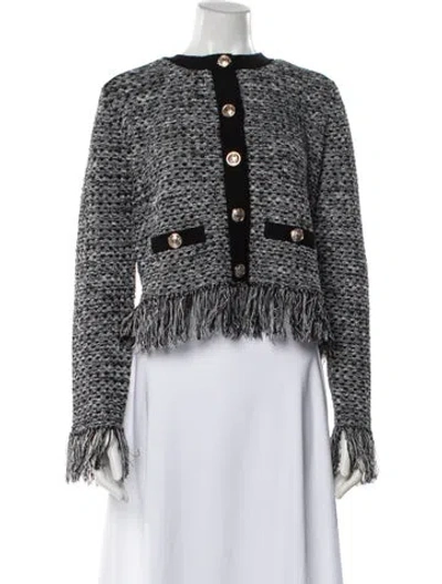 Milly Tweed Evening Jacket Tweed Pattern Fringe Trim Accent & Collarless Slit Pockets & Button Closure Fit: Jackets by Milly typically fit true to size. | Milly Tweed Tweed Pattern Evening Jacket, Women's M