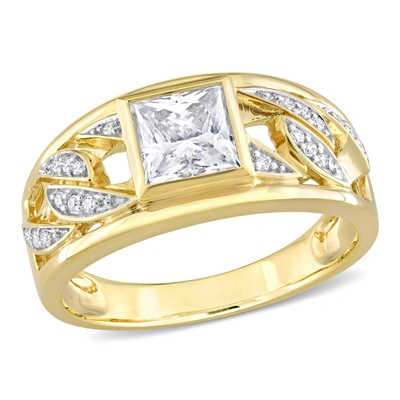 1 1/3ct Tw Moissanite Men's Ring With Link Design In 10k Yellow Gold In Silver