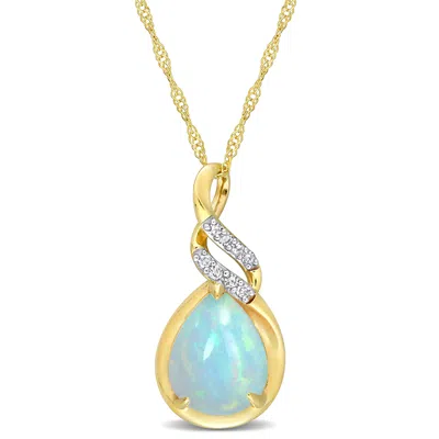 MIMI & MAX 1 1/5 Ct Tgw Ethiopian Blue Opal And Diamond Accent Twist Pendant With Chain In 10k Yellow Gold