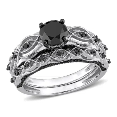 1 3/8ct Tw Black Diamond Bridal Set In 10k White Gold With Black Rhodium