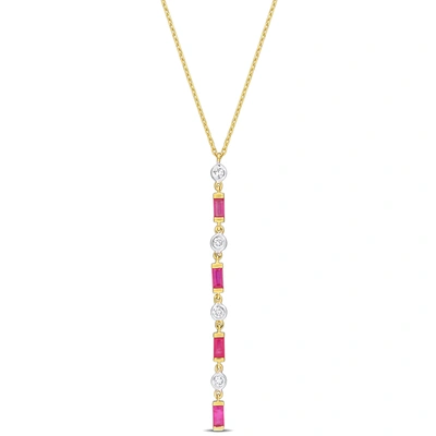 MIMI & MAX 1/5ct Tdw Diamond & 1/6 Tgw Baguette Cut Ruby Lariat Necklace In 10k Yellow Gold- 16.5 In In Red