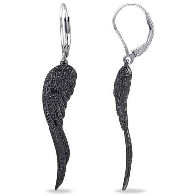 MIMI & MAX Black Diamond Leverback Wing Earrings In Sterling Silver With Black Rhodium