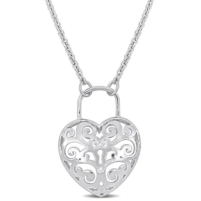 MIMI & MAX Heart Lock Necklace With Chain In Sterling Silver - 16+3 In In White
