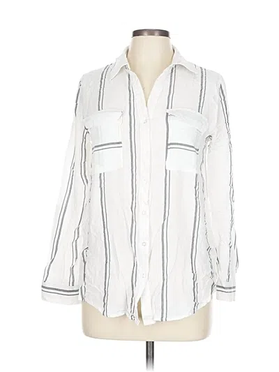 Mine Long Sleeve Button Down Shirt, Size: Large. Item Details: White, Stripes Pattern, Square Neckline, Women's Tops, 100% Rayon