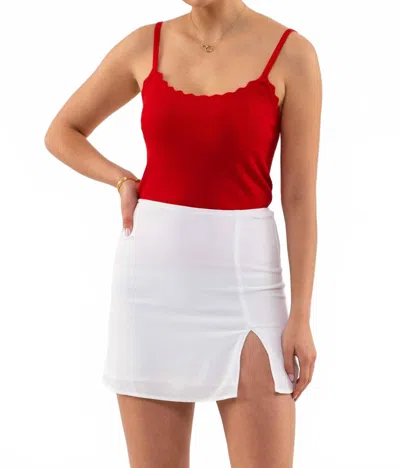 Fit, fabric and functionality. This tank top checks all the boxes.Introducing the Scalloped Edge Layering Tank by Mine, a chic and sophisticated addition to your wardrobe. This sleeveless tank top in vibrant red features a stylish scalloped edge that adds a touch of elegance to both the top and bottom. Crafted from an 80% Viscose and 20% Polyester blend, this pull-on top is made for comfort and durability. Care instructions suggest washing inside out and laying flat to dry for best results.