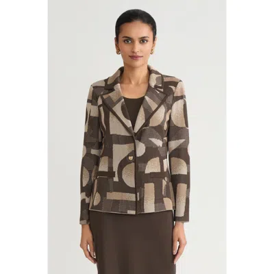 MING WANG Tailored Geometric Jacquard Knit Blazer In Brown