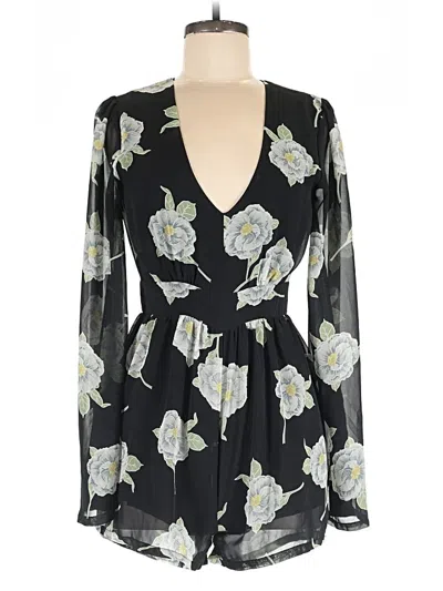 Minkpink Romper, Size: Medium. Item Details: Black, Floral Pattern, Plunge Neckline, Long Sleeve, Women's Dresses