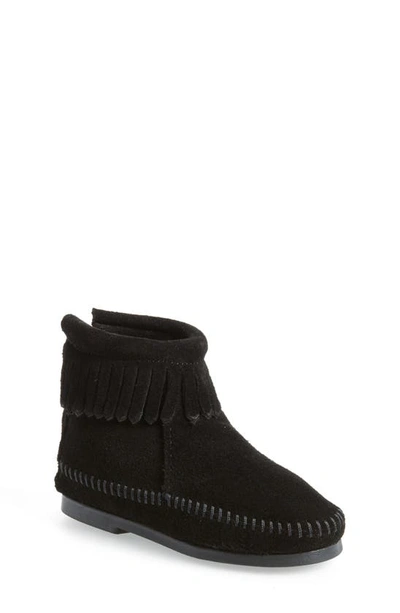 A fringed cuff decorates a soft suede bootie with a back zip for easy on and off. Style Name: Minnetonka Back Zip Boot (Toddler & Little Kid). Style Number: 254123.