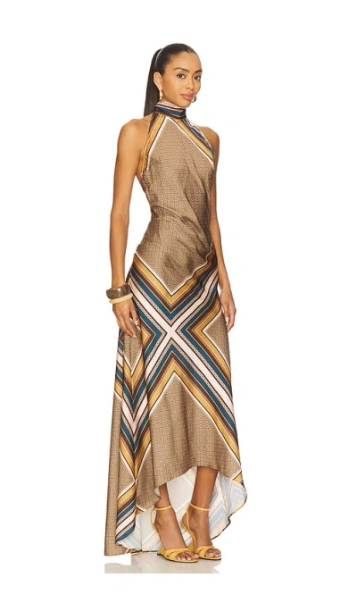 MISA Los Angeles Minerva Dress in Brown. - size XS (also in L, M, S, XL) MISA Los Angeles Minerva Dress in Brown. - size XS (also in L, M, S, XL) 100% polyester. Made in China. Dry clean only. Unlined. Halter tie neckline; sleeveless. Open back with hidden back zipper. Maxi length with asymmetrical high-low hem. MISA-WD877. DRDL94111. Shadi Askari-Farhat, the designer behind Tbags Los Angeles, launched MISA in Spring 2016. A combination of her daughter's names, Milla and Sayeh, the label embodies the natural evolution of the designer with an elevated femininity and sophistication. Deeply inspired by her travels and love for global style, MISA is for the modern-day bohemian who spends her life travelling the world, leaping from one exotic location to another.