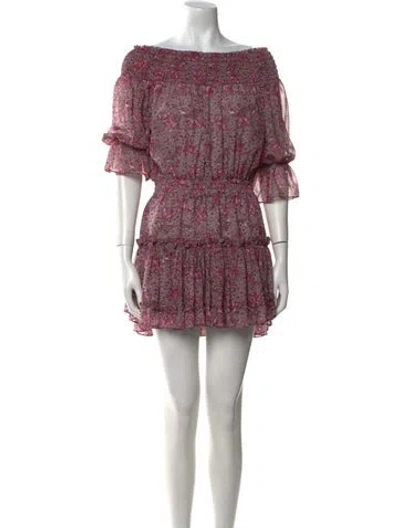 MISA Los Angeles Dress Grey & Purple Printed Pleated & Ruffle Accents Three-Quarter Sleeve with Bateau Neckline Concealed Zip Closure at Back Designer Fit: Dresses by MISA Los Angeles typically fit true to size. | MISA Los Angeles Printed Mini Dress in Grey/Purple, Women's S