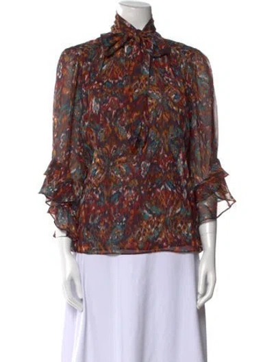 Pre-owned Printed Mock Neck Blouse In Multi
