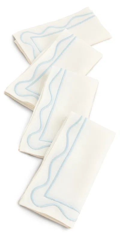MISETTE Set Of 4 Linen Embroidered Napkins Blue
