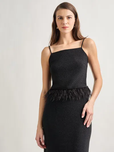 Modern Fit Ostrich Feather Trim Stretch Woven Tank In Black