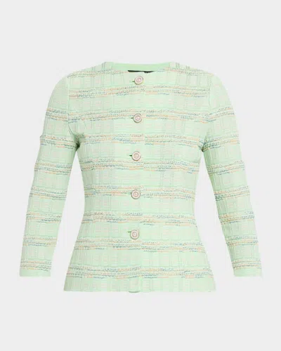 Misook Collarless Knit Jacket.Color:Paradise Green/Multi.Size:XXL.Material:68% acrylic/25% nylon/7% rayon.Jackets.