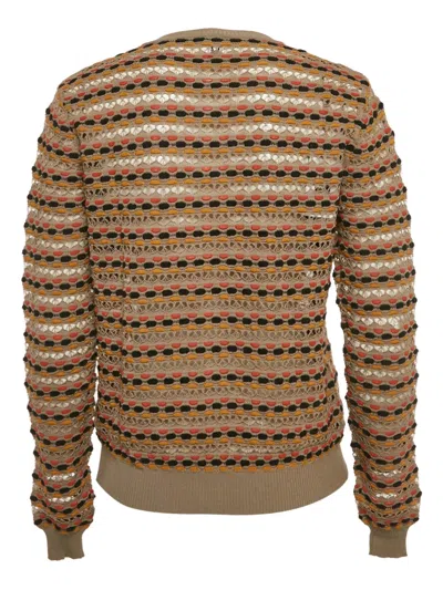 beige knitted button fastening long sleeves horizontal stripes open knit detailing Condition: UNWORN. This item is previously owned but remains unworn and in its original condition. However, it does not come with its original tags. The item you receive may differ slightly from the item photographed. This is due to the artisanal nature with which all Missoni products are constructed.