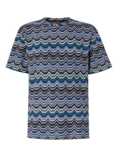 MISSONI Crew Neck T-shirt With Geometric Zigzag In Multi