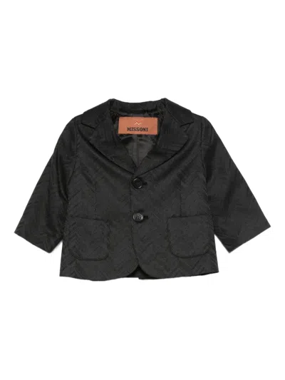 MISSONI Babies' Herringbone-pattern Three-button Jacket In Black