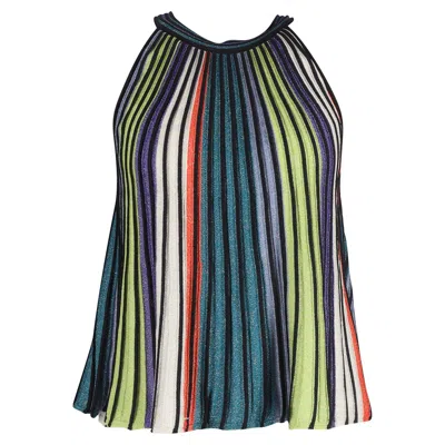 MISSONI M Knit Detail Pleated Sleeveless Top In Multicolor Striped Lurex