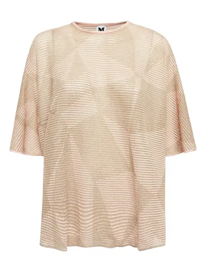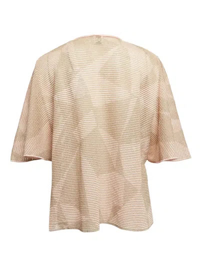 beige crew neck metallic threading multi-way stripe pattern crew neck short sleeves straight hem Condition: UNWORN. This item is previously owned but remains unworn and in its original condition. However, it does not come with its original tags.