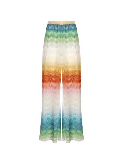 white and multicolour all-over pattern elasticated waistband sheer finish wide leg knitted construction The item you receive may differ slightly from the item photographed. This is due to the artisanal nature with which all Missoni products are constructed.