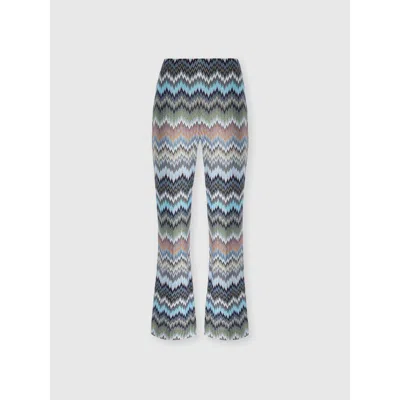 Missoni presents the Spring-Summer 2026 collection: a celebration of femininity, lightness, and colour. A collection that tells the story of beauty through contrasts: flowing lines, exquisite craftsmanship, and the brand’s unmistakable identity. Iconic zigzags, lurex weaves and textures capture the light, combining elegance and freedom. Women's cropped flare pants Elastic waistband 100% viscose Chevron snake pattern Ironing maximum temperature 110°C - without steam Dry cleaning in tetrachloroethene - mild process Do not tumble dry Dry flat Do not wash Do not bleach