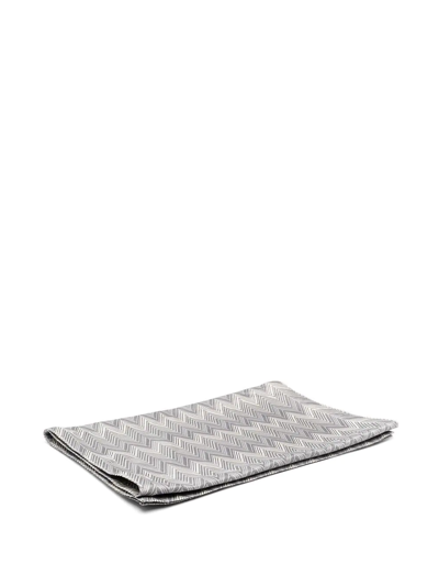 stripe-pattern table cloth from Missoni Home featuring light grey, fine knit, rectangle shape and diagonal stripe pattern.