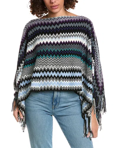 Elevate your cold-weather wardrobe with the Missoni Wool-Blend Poncho. Crafted with a luxurious blend of 50% wool and 50% acrylic, this poncho features a stunning blue multicolor pattern and fringe hem for added flair. The slip-on styling provides effortless wear, making it the perfect layering piece for any outfit. Designed and made in Italy, this poncho is a timeless addition to your collection. For best care, dry clean only.