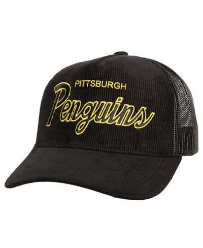 MITCHELL & NESS Men's Black Pittsburgh Penguins Times Up Classic Script Cord Trucker Adjustable Hat