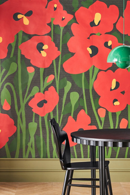 Bold and intriguing, this wallpaper by Mitchell Black immediately turns any wall into a statement piece. Whether you seek to make a bold statement or to bring the essence of nature into your interiors, the Poppy Fields mural will be the center of attention wherever it is displayed. To calculate the square footage of your space, we recommend combining the width of each wall, then multiplying this number by your ceiling height. Next, divide this number by the square footage of a single roll of wallpaper to determine the number of rolls required. Always round up to account for pattern repeat and variation. Need help choosing the right wallpaper for your home? [Read our guide]( https://www.anthropologie.com/stories-home-wallpaper-guide) to transforming your walls - and your space. Poppy Fields Mural by Mitchell Black in Red at Anthropologie