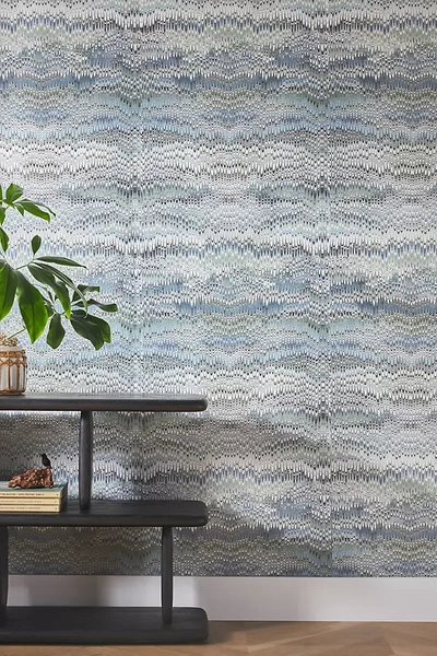 Bold and intriguing, this wallpaper by Mitchell Black immediately turns any wall into a statement piece. Its elegant yet approachable pattern is perfect for creating sophisticated and artful spaces. To calculate the square footage of your space, we recommend combining the width of each wall, then multiplying this number by your ceiling height. Next, divide this number by the square footage of a single roll of wallpaper to determine the number of rolls required. Always round up to account for pattern repeat and variation. Need help choosing the right wallpaper for your home? [Read our guide]( https://www.anthropologie.com/stories-home-wallpaper-guide) to transforming your walls - and your space. Stonewashed Wallpaper by Mitchell Black in Blue at Anthropologie