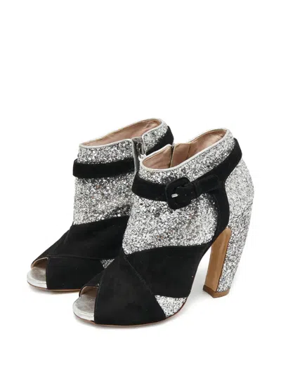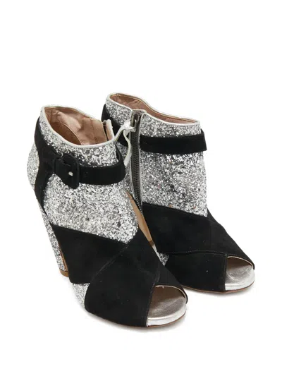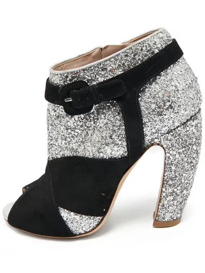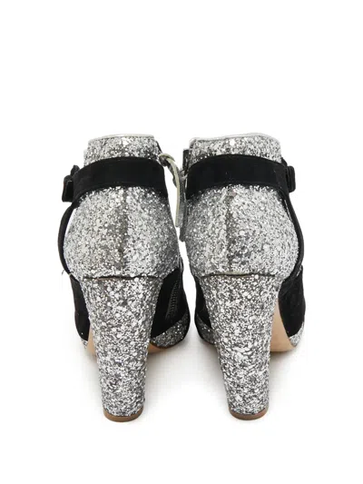 Pre-owned 110mm Glitter Ankle Boots In Silver