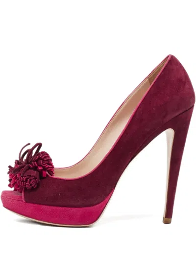 Pre-owned 155mm Leather Heeled Sandals In Red
