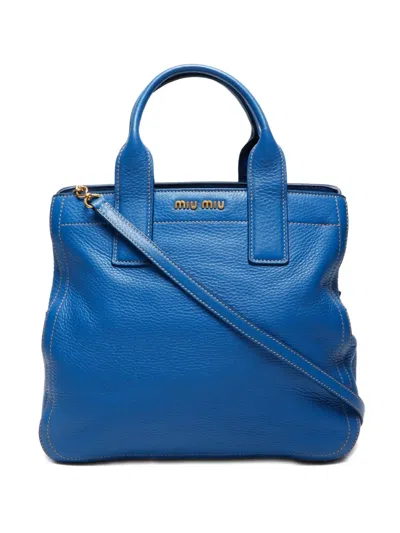 Pre-owned 2000-2015 Leather Two-way Tote Bag In Blue