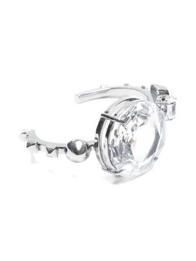 circa 2000s silver-tone crystal embellishment pyramidal studs spherical studs Condition: GOOD. This previously owned and used item is in good condition with minimal signs of use. This may include fading of material or plating and scratches.