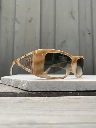 Pre-owned 2000s Mesh Sunglasses Y2k Vintage Smu01h Prada In Cream