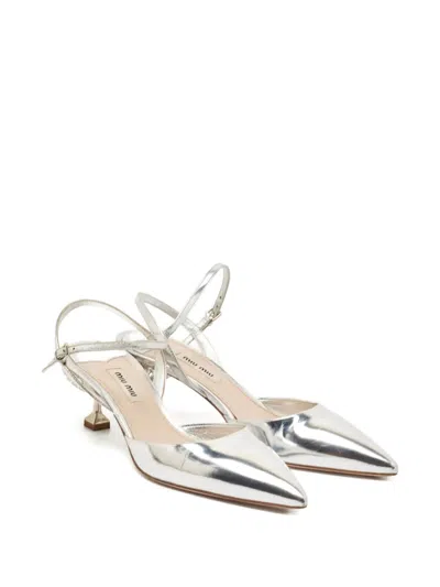 silver patent leather pointed toe slingback strap crystal embellished heel low heel Condition: GOOD. This previously owned and used item is in good condition with minimal signs of use. This may include fading of material or plating and scratches.