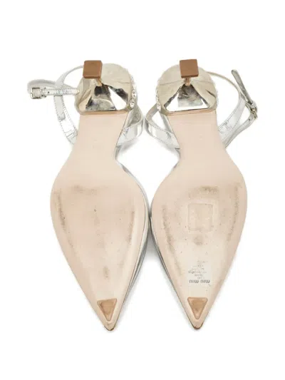 Pre-owned 60mm Crystal-heel Sandals In Silver