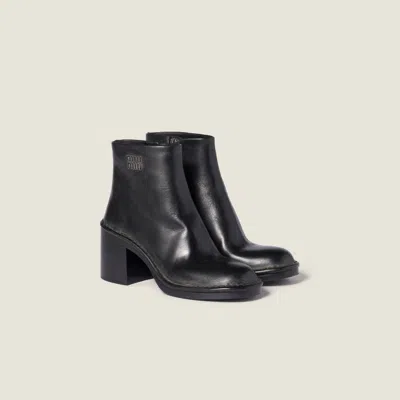 Leather lining---Side zipper closure---Boot leg: 10 cm---Heel height: 70 mm---Leather and rubber sole---Leather insole---Embossed logo on the upper