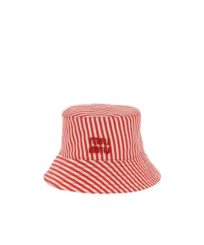 MIU MIU Appliqué-logo Clutch And Bucket Hat (two-piece Set) In Red